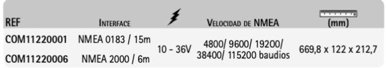 | intERFacE | NMEA 0183 / 15m, NMEA 2000 / 6m |