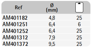 | aucun | 4,8 25, 6,4 25, 6,4 6, 7,9 25, 9,5 25 |
