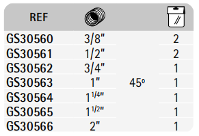 | FILETAGE | 1”, 1/2”, 11/2”, 11/4”, 2”, 3/4”, 3/8 |