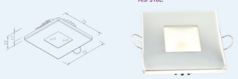 Plafonnier encastré à LED lumen 237 blanc chaud/froid. Corps en aluminium moulé sous pression et Aisi 316L.